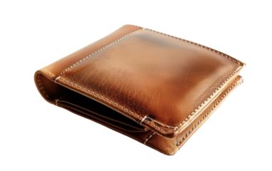 Men's leather wallet isolated on transparent background, PNG file, classic design