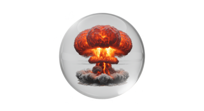 3D Rendering Nuclear Atomic Explosion in Bubble PNG Background