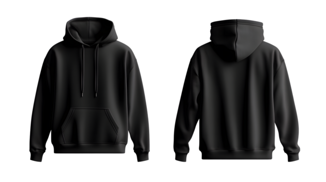Black Pullover Hoodie Mockup: Front and Back View Isolated - Professional Apparel Presentation�rn