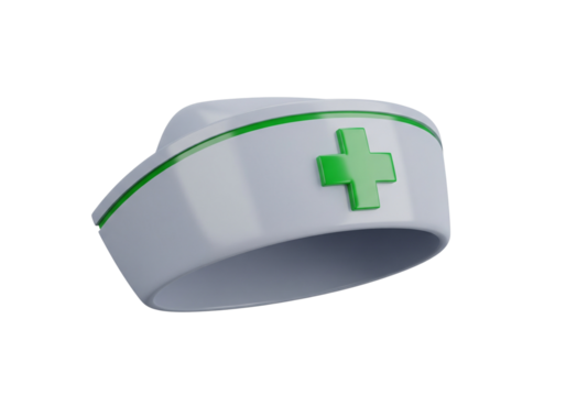 3D Render of Nurse Cap with Green Cross Symbol - Healthcare and Medical Icon