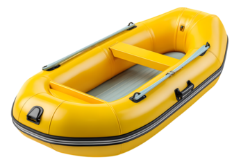 Yellow inflatable raft with handles isolated on transparent background