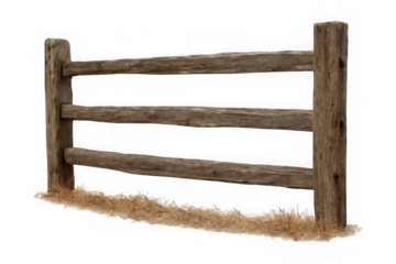 Wooden split rail fence isolated on transparent background for farm or ranch