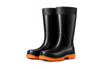 Pair of black rubber boots with orange soles providing waterproof protection for rain and gardening