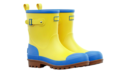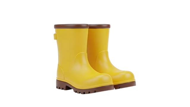 Bright yellow rain boots isolated on transparent background. PNG