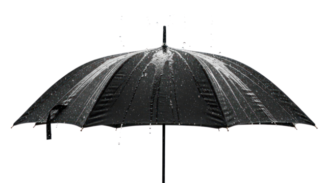 Silhouette of businessman with suitcase and umbrella on transparent background