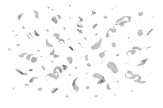 Water droplets splashing and scattering, creating dynamic liquid movement with a transparent background