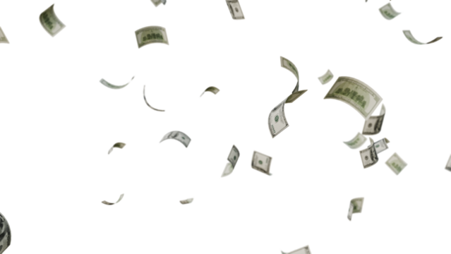 US Dollar Banknotes Flying Transparent PNG. money rain effects, finance-themed graphics, business ads, wealth or investment promotions, and creative motion design projects.