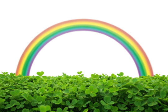 Seamless pattern of orange clouds and green rainbows on transparent background