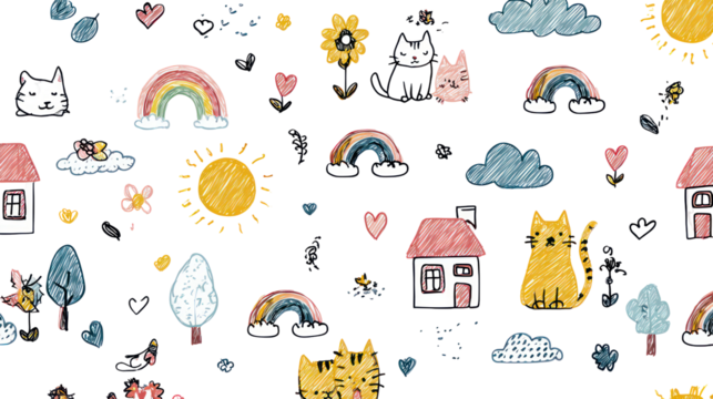 Cute  and adorable cat with rainbow fur isolated on a transparent background