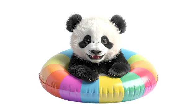 Digital art of a cute chihuahua wearing a rainbow scarf and swim ring, against a black background