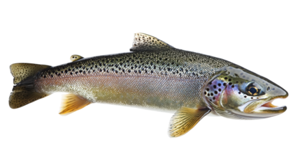 Isolated on transparent background, rainbow trout fish with vibrant colors