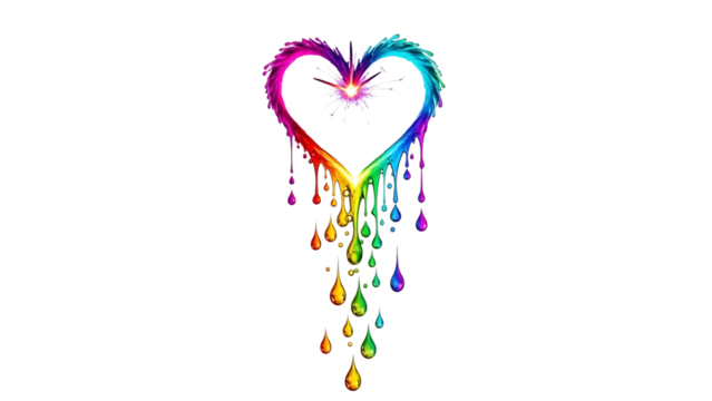 Rainbow heart with dripping colors and sparkle isolated on transparent background
