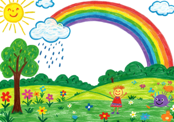 Vibrant transparent canvas with smiling sun and rainbow frames