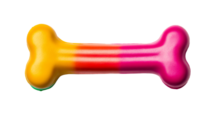 Dog bone toy in vibrant rainbow color scheme, cut out transparent