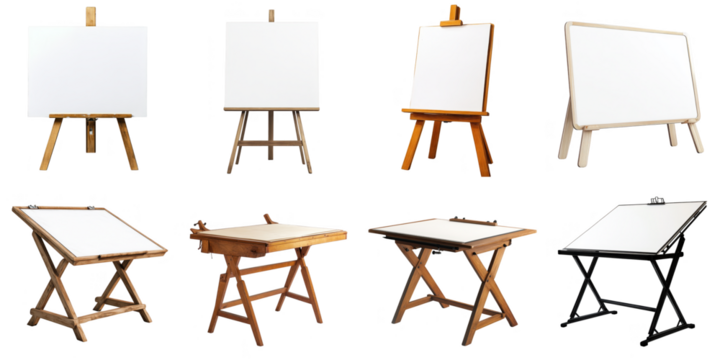 Canvas and Drafting table transparent collection set in png no background for decoration.