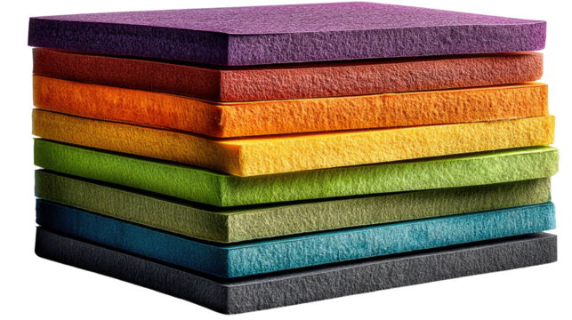 A vibrant spectrum of painted wooden wedges forming a cheerful pie chart, showcasing a bold and playful artistry with a bright, clean white background.