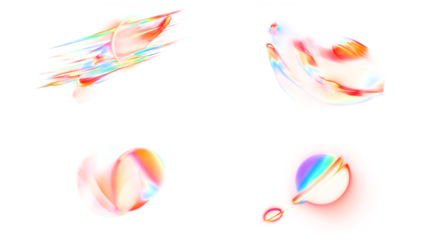 Shattered, iridescent crystalline forms floating against a black background