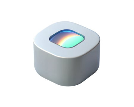 A modern 3D holographic sushi icon with a rainbow effect on a sleek metallic surface, isolated on white background. Great for technology, food, and creative concepts.