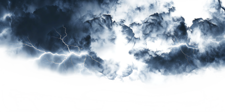 Dark rainy stormy cloud with lightning and rain isolated on transparent and white background.AI GENERATED