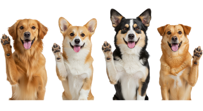 Group of Friendly Dogs Waving on White Background