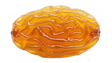 Wooden bowl full of golden raisins isolated on transparent background, dried fruit snack, healthy eating concept, top view
