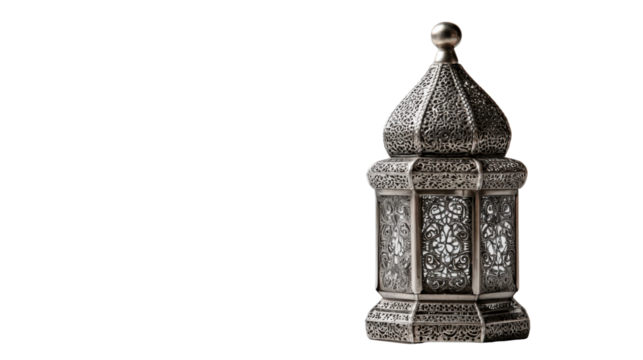 Ornate silver ramadan lantern for muslim celebrations and islamic holy month traditions, transparent background