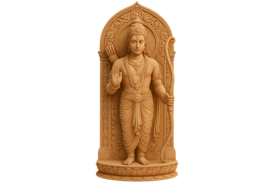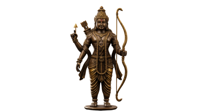 Lord Rama with arrow Golden Statue Isolated on transparent background, Lord Rama Statue PNG
