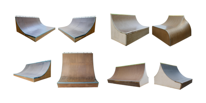 Versatile Wooden Skate Ramps for Thrilling Skateboarding Activities, isolated on transparent background