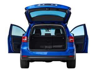 Blue SUV Rear View with Open Trunk