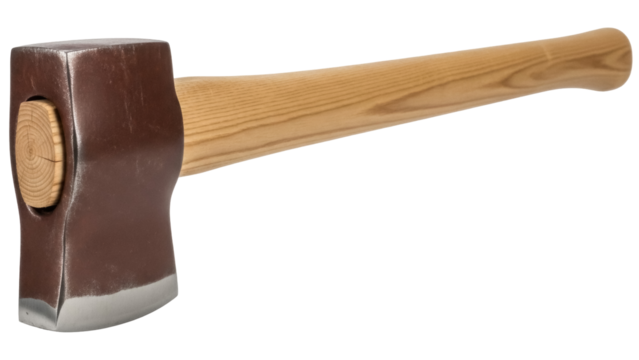 Isolated splitting maul with wooden handle used for felling trees and chopping firewood stock photo