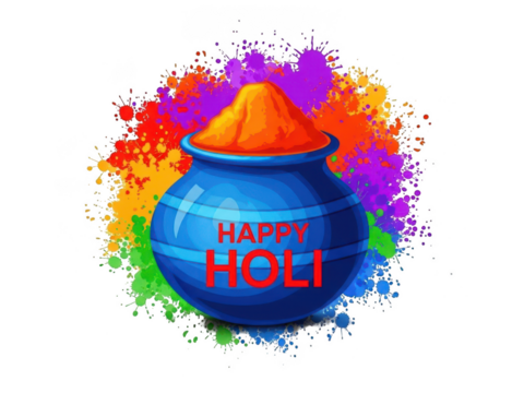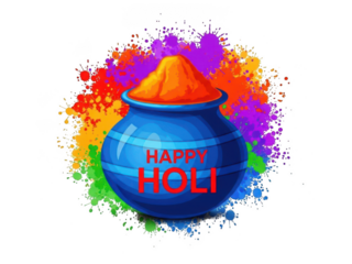 Dhol drum with vibrant holi color powder explosion isolated on transparent background
