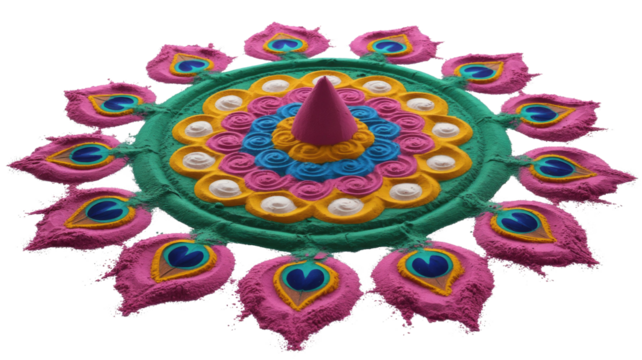 Celebrating Holi with Colorful Rangoli Art Isolated on transparent background.