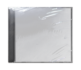 CD disk video case on black background. Isolated music transparent mockup. Clean cover box template.
