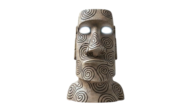 Moai Statue with Swirl Carvings and Glowing Eyes