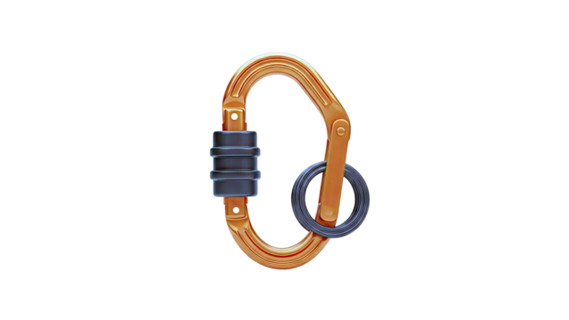 Blue metal locking carabiner for climbing and outdoor activities, cut out, stock png, isolated on transparent background