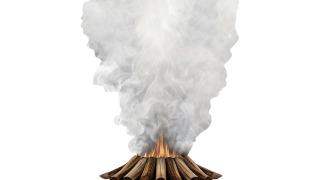 Detailed clean white smoke drifting upward from volcano eruption isolated on transparent background