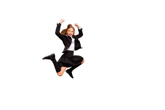 Full length photo of delighted kid screaming shouting yeah rasing  fists celebrating isolated over yellow background