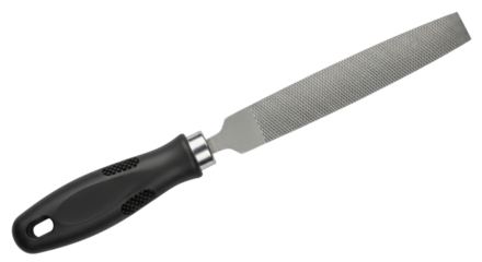 Metal file tool with a black handle isolated PNG with Transparent Background