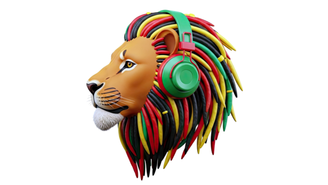 Lion with Rasta Dreadlocks and Headphones