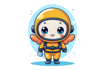 Diver, kawaii, cartoon characters, cute lines and colors, coloring pages