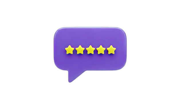 3D Five Stars Rating in a Speech Bubble on transparent background