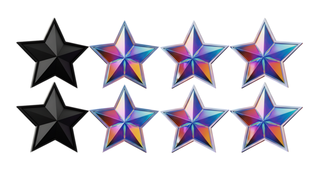 Rating stars with transparent background for reviews or feedback
