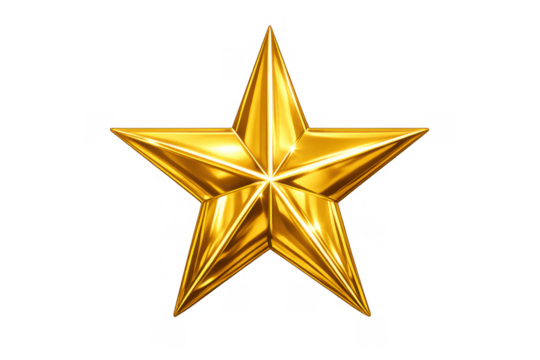 Golden star awarding success, achievement, excellence, and a top rating in 3d rendering with a glossy metallic finish