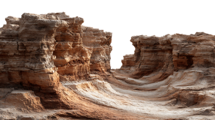 A view of the canyon with sandy texture isolated on white background