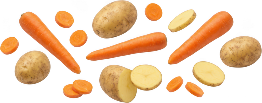 Carrot round slices Classic coin-shaped carrot pieces isolated on a white transparent background in high-quality PNG cutout format for versatile use