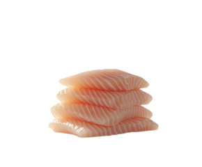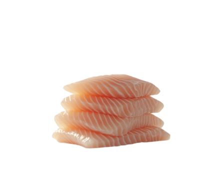 Raw fish fillets on a white background, fully visible and centered. PNG transparent.