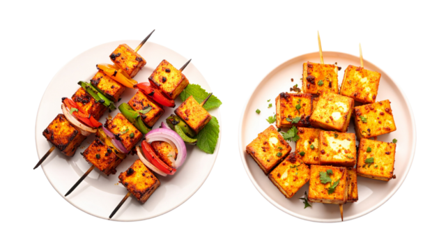 Pieces of fresh vegetable sushi roll isolated on transparent background. Two kimbap rolls with colorful vegetables and rice isolated on white background.