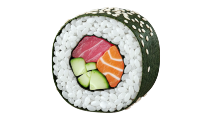 Sushi Roll with Tuna, Salmon, and Cucumber