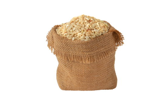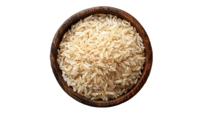 Wooden spoon with rice isolated on transparent background. PNG file, cut out