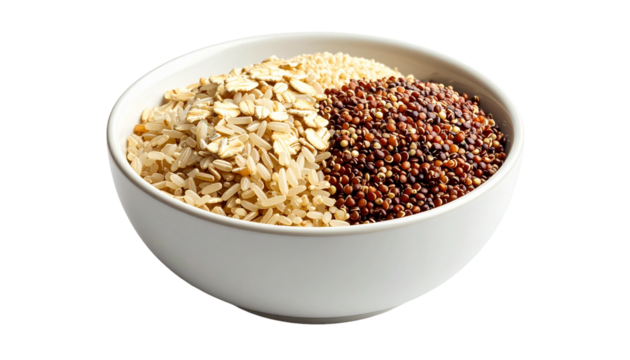 Fresh Long Brown Rice Uncooked and Hulled Isolated on White Background for Healthy Eating, Organic Grain, and Food Ingredient Concepts